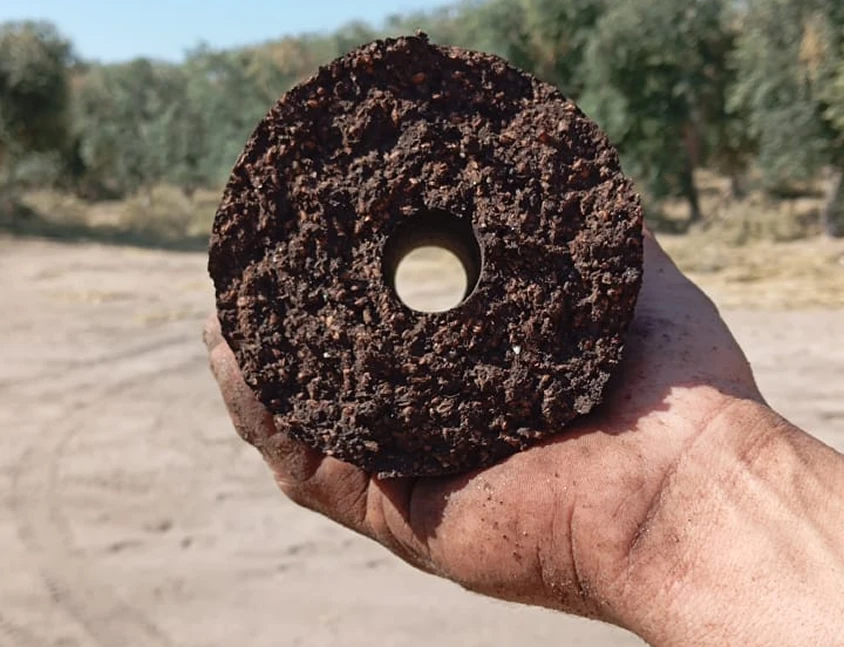 A través de un proceso optimizado de prensado y compactación, combinamos orujo de aceituna, poda de olivo y un aglutinante natural para obtener briquetas de alto rendimiento.